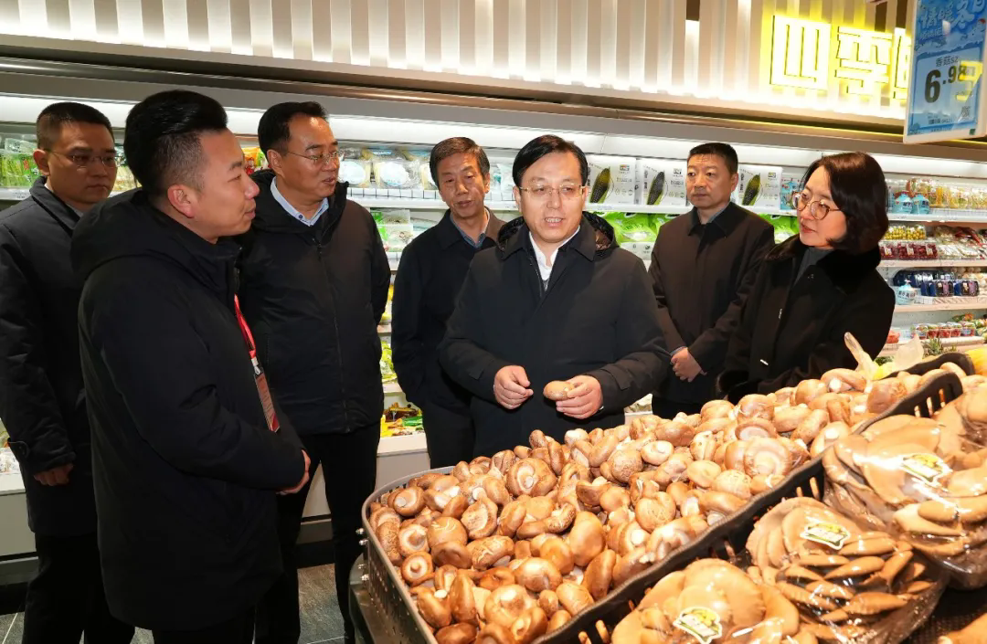 在宏凱超市,王帥紅實地查看水果、蔬菜、海鮮、熟食、酒水等民生商品的供應品類、銷售價格和儲備等情況,與商戶親切交流。他指出,“米袋子”“菜籃子”關系千家萬戶。要密切關注市場動態,加強貨源組織調運,嚴把商品質量關,維護良好市場秩序,確保節日市場供應充足、品種豐富、價格平穩,切實保障人民群眾基本生活需求。